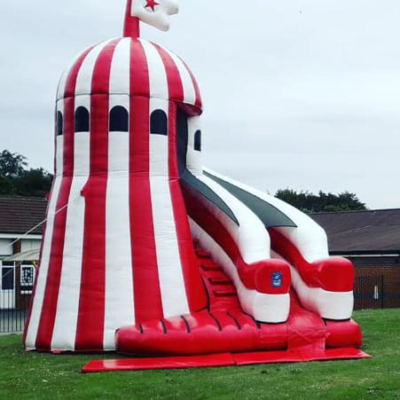 PLEASE ALSO NOTE THE HEIGHT OF THE HELTER SKELTER IS 23FT & NEEDS A LITTLE OVER THIS FOR SAFETY REASONS. PLEASE CHECK BOTH MEASUREMENTS WITH YOUR VENUE BEFORE BOOKING.