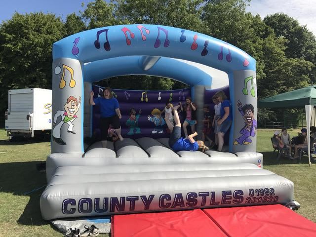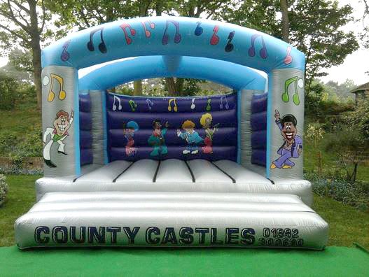 Adult & Kids Bouncy Castle in a Disco Theme. This is a relatively big castle so will accomodate a larger number of people than most castles. Great for large gardens and indoor hall hirings.