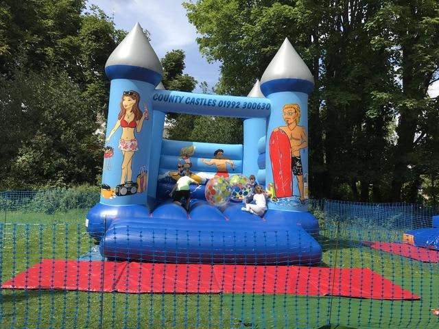 A fabulous large castle suitable for big gardens or open spaces. Also great for indoor hall hirings with high ceilings. Surf City is suitable for both adults and kids. To add to that beach/surf theme Surf City also can also come with large beach balls, if requested, to throw around and add to the fun.
