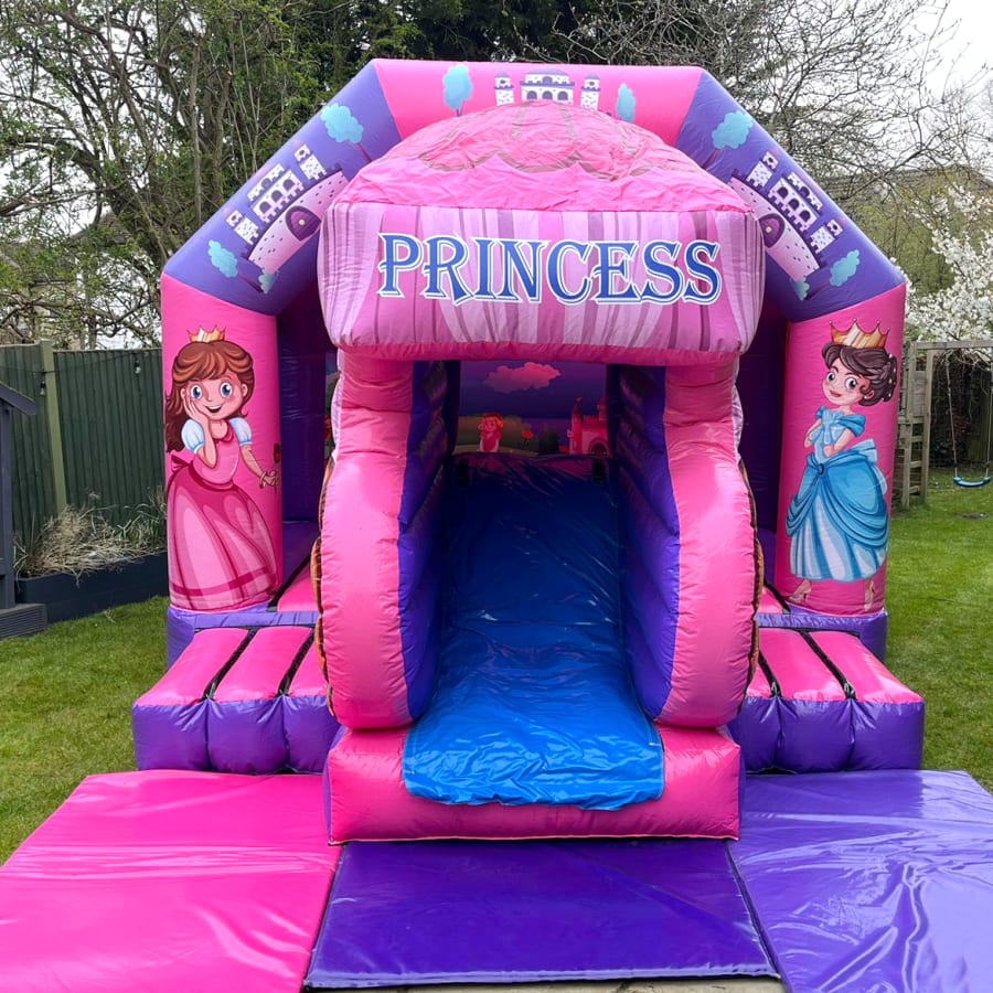 New for 2023 our stunning Enchanting Princess Castle / Slide Combo Inflatable. Perfect for any Princess Party!