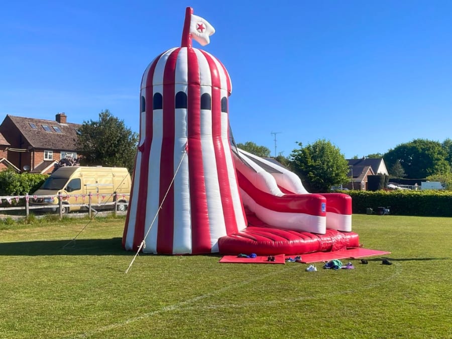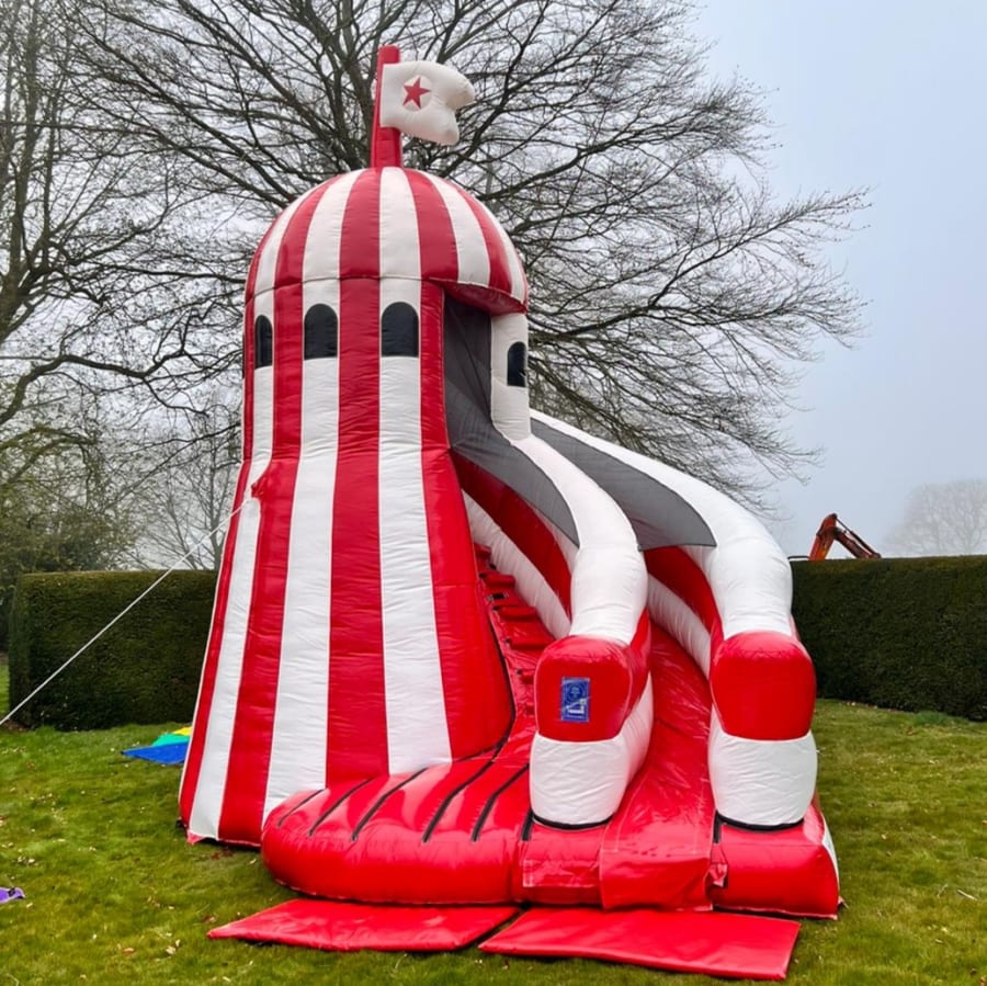 PLEASE ALSO NOTE THE HEIGHT OF THE HELTER SKELTER IS 23FT & NEEDS A LITTLE OVER THIS FOR SAFETY REASONS. PLEASE CHECK BOTH MEASUREMENTS WITH YOUR VENUE BEFORE BOOKING.
