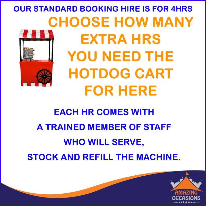 Choose this option for 1hr extra Hot Dog Steamer Hire with a trained staff member.